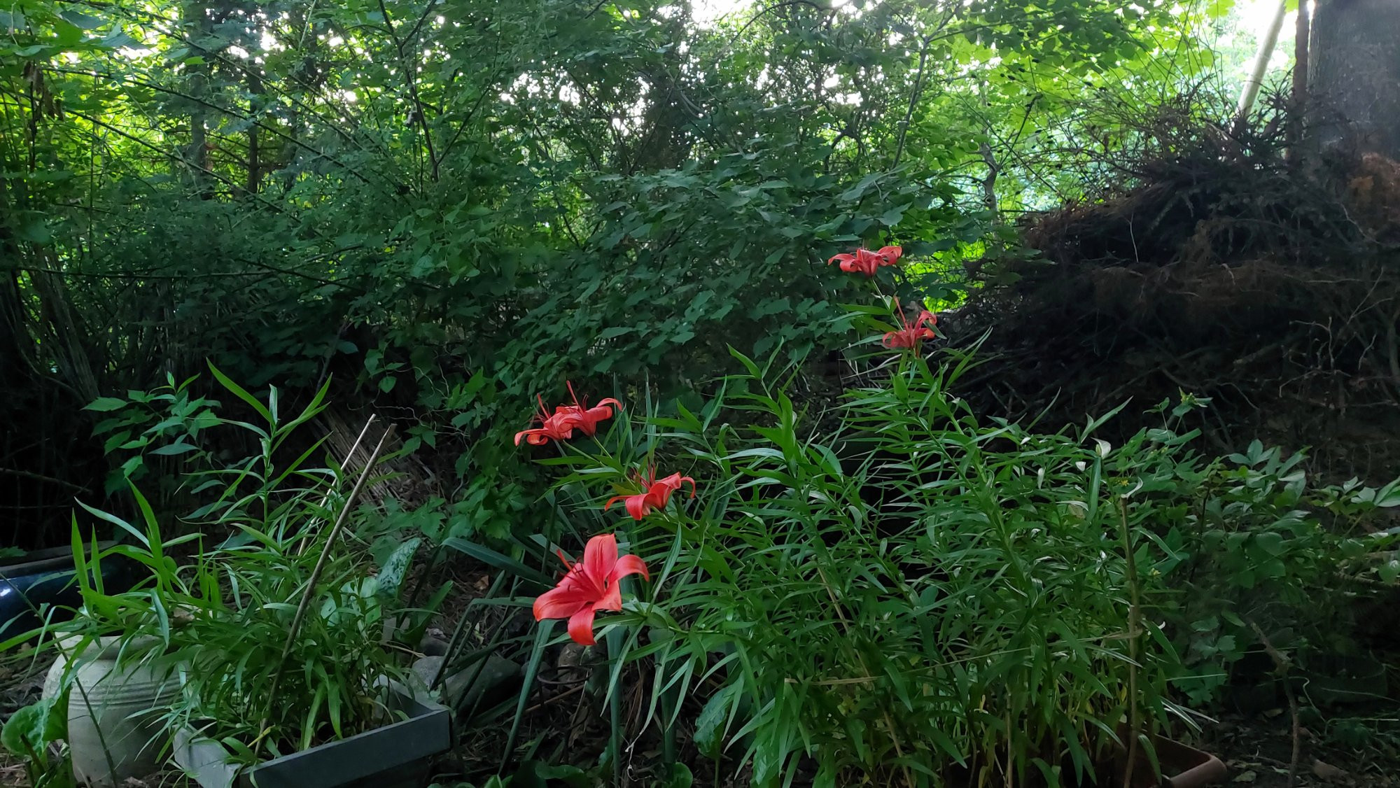 Aruncus dioicus wie ein Fels in der Brandung, Lilium bulbiferum wie Glühwürmchen in der Dämmerung, Asplenium scolopendrium darf