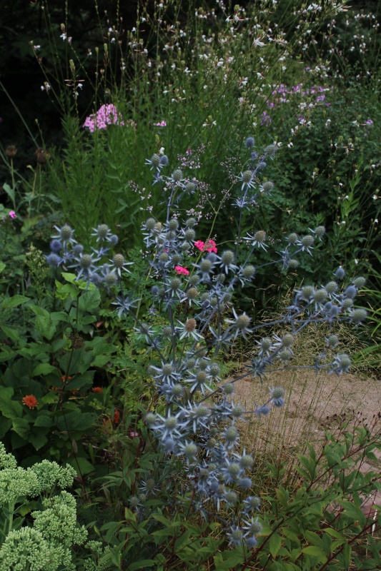 Jetzt im dritten Jahr überragen mich die meisten Pflanzen und einiges versamt sich sehr, vor allem Knautia. Es wird ziemlich eng im Beet, aber im Frühjahr sieht es soooo harmlos aus....