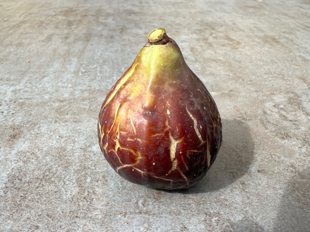 Die Feige hat den Regen, den es hier kürzlich gab, trotz nicht dicker Haut gut überstanden und wog 40-45 g