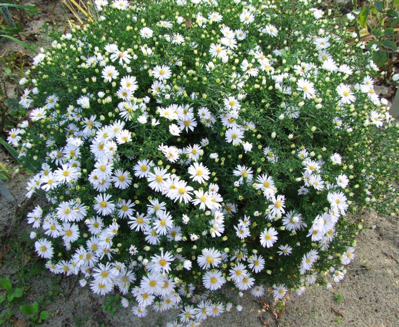 Ganz gut gefällt mir Boltonia 'Snowbank'.Im letztem Jahr noch verhalten,legte sie jetzt richtig los.Die kleinen Gänseblümchen sind in der Masse sehr schön anzusehen.