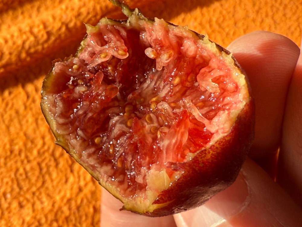 Meine Figo moro kam auch von Erich in 2023, danke nochmal! Letzte Woche konnte ich die beiden Herbstfeigen probieren und bin begeistert. Sehr geschmackvoll und intensiv trotz schlechter Wetterbedingungen, das ist sehr vielversprechend!