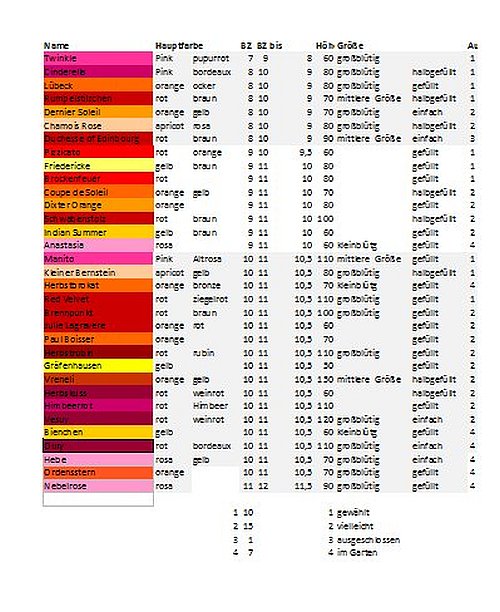 Danke, an enaria und krokosmia, euch Anmerkungen habe ich mir notiert.Nein, kaieric, kein Weiß, kein Crème bei den Chrysanthemen, die sollen möglichst feuern. Crème macht die Oenothera odorata, welche sich dort auch aussamt und auch teilweise bleiben darf. Die rosa Chrysanthemen hellen auf und außerdem gibt es Gräser, die wirken auch hell.Was meinst du mit pomponblütigen? gefüllte? Gefüllte Chrysanthemen habe ich doch auf der Liste?
