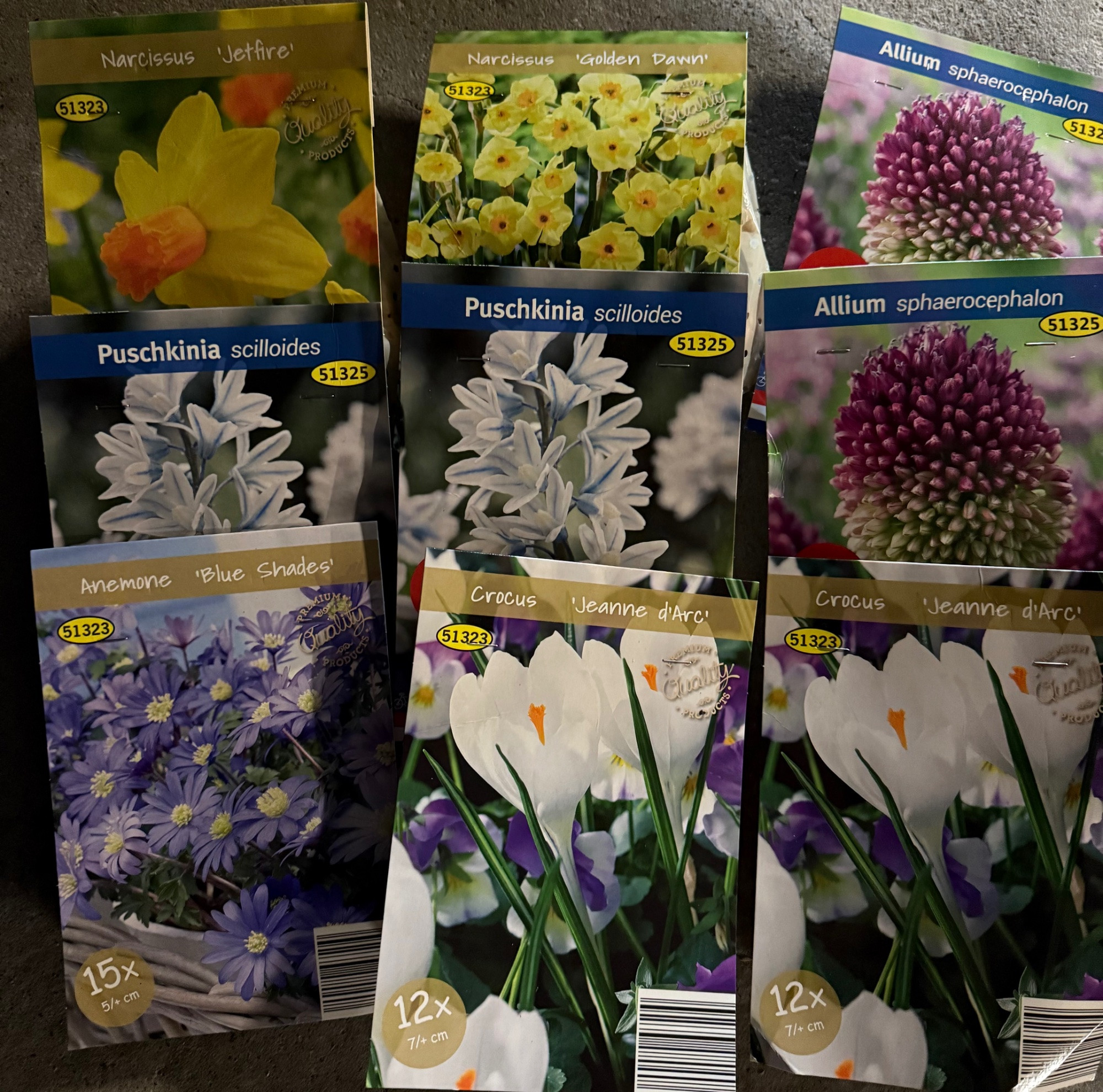Die Allium und Puschkinien habe ich auch gekauft. Zusätzlich noch Krokus-Mix.