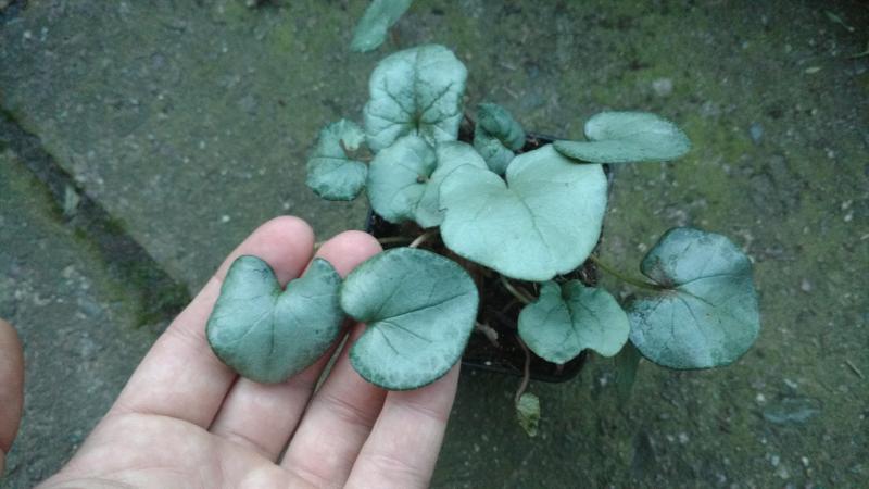 Ich fischte den Topf aus einer Kiste mit hederifolium. Insbesondere die Blätter links unten sahen aber auch mir nach purpurascens aus. Nun bin ich irgendwie gespannt. Ich gehe aber schon von mindestens zwei Knollen im Topf aus.