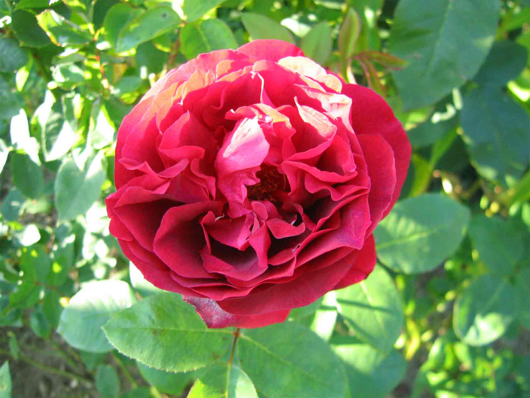 Rose de Rescht hatte seit Juni fast immer ein paar Blüten und jetzt noch einiges an Knospen. Leider sitzt sie direkt an der Wühlmausmeile und hat deshalb immer Schwierigkeiten mit dem Wachstum. Hält sich aber tapfer