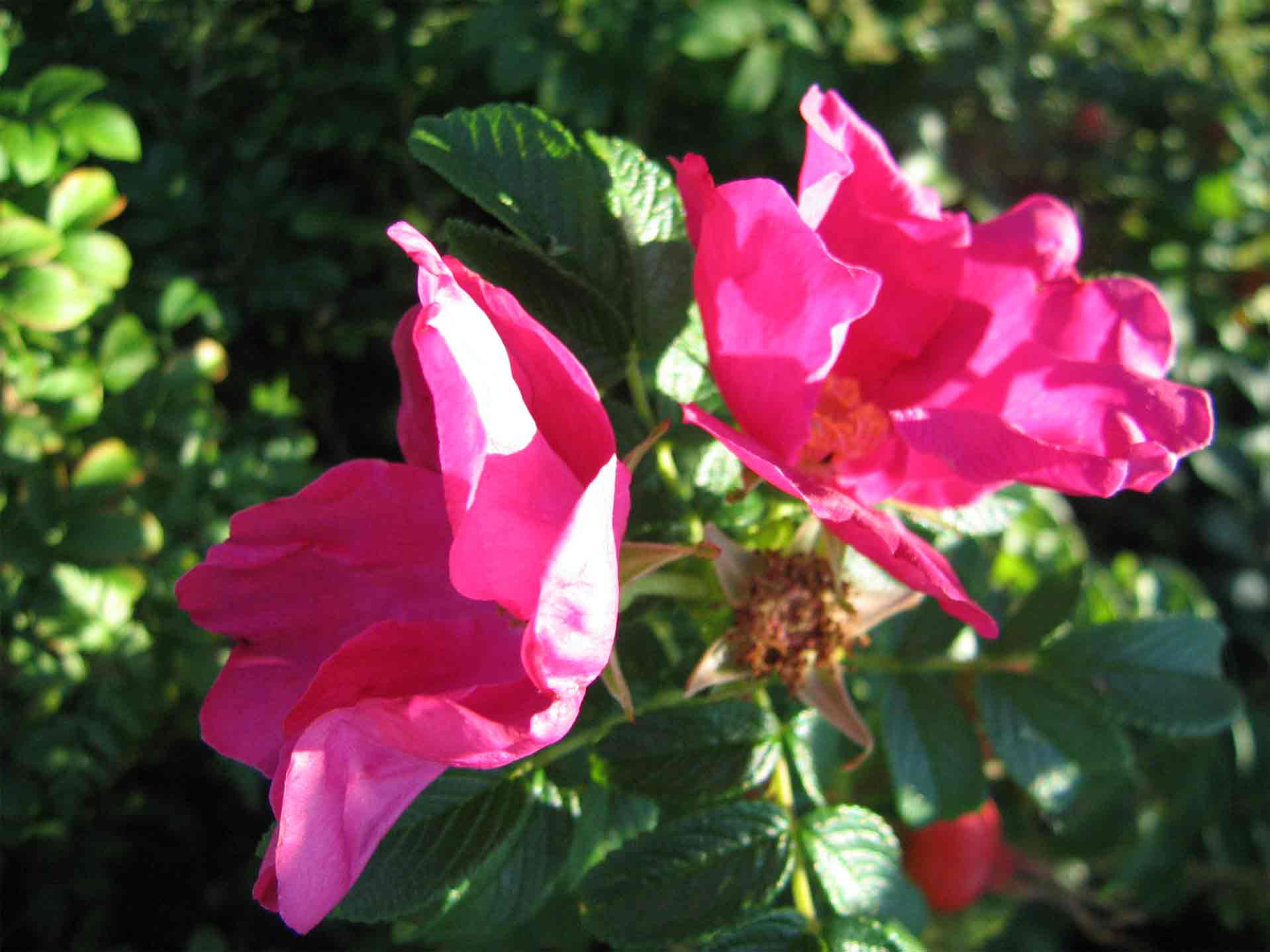 Die Fotos von den Rugosas stammen von Ende August, aber die blühen noch immer genauso unverdrossen: mein schwedischer Sämling und Dagmar Hastroop stehen nebeneinander und blühen tatsächlich um die Wette
