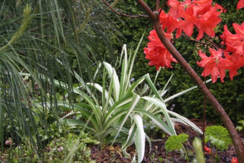 Was die Panaschierung betrifft, hab ich auch eine eigenartige Erfahrung gemacht: Vor zwei Jahren musste Kwanso fulva variegata umziehen, dabei hab ich den Horst geteilt und das größere Stück halbschattig gepflanzt, das kleinere "irgendwohin wo es nicht stört", also ziemlich lieblos in eine Schattenecke hinter einer Azalee. Der Erfolg: Das Teilstück, das eigentlich zuviel war, zeigt eine wunderbare Panaschierung, während das im Vordergrund fast rein grün ist ...