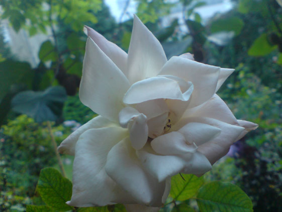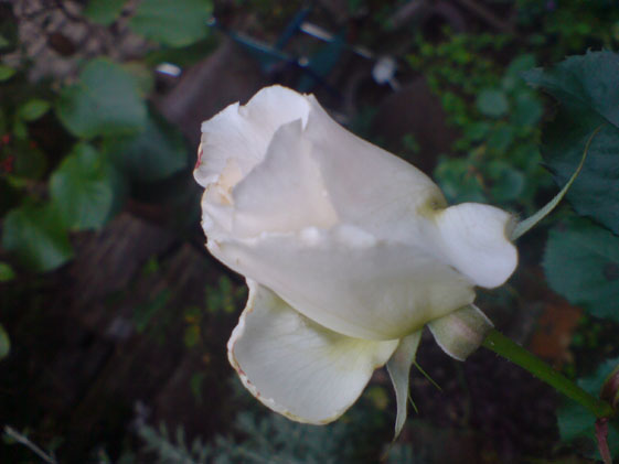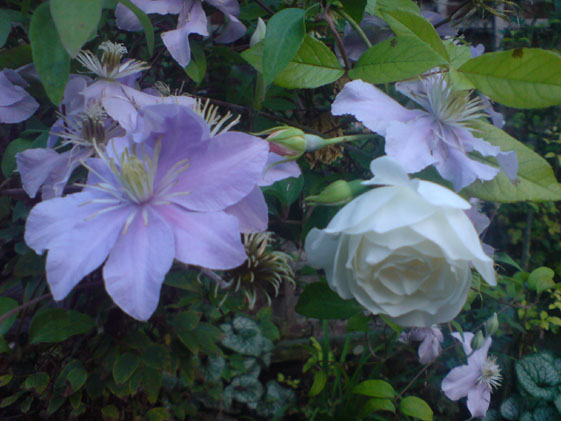 Gloria Dei blüht bei mir noch, mein rotes UFO hat noch ein paar Blüten und mein weiß-rosa Mini-UFO, völlig Mehltaubehaftet blüht und blüht und kriegt sich schier nicht ein. Verzweiflungstat ob des Mehltaus? Oder aus Freude über den neuen Standort? Und Grace blüht, die vierte jetzt schon, seit sie im Topf auf ihre Einpflanzung wartet.