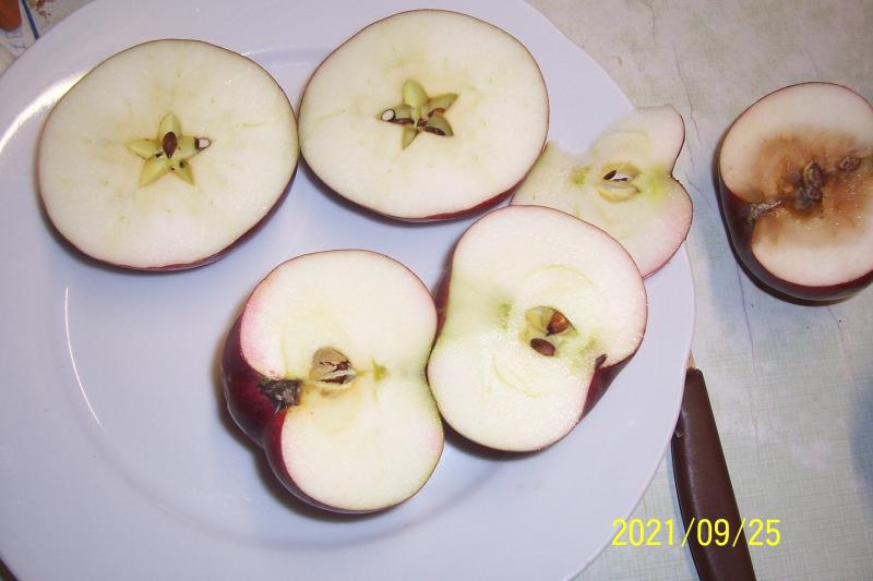 Ich habe leider keinen Apfel vom McIntosh Wijcik mehr - sonst hätte ich ihn so wie Du aufgeschnitten. Bei mir waren es diesmal nur deren drei - und einer lag schon verfault am Boden, als ich an diese im Moment sehr verwilderte Stelle im Garten gekommen bin.
