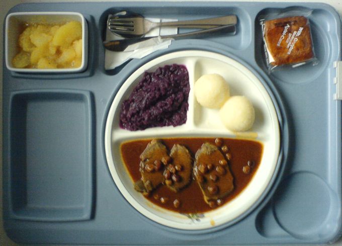Dafuer erreichte am Donnerstag meine Essensauswahl den Tiefpunkt...ich hatte mich wieder fuer vegetarisch entschieden und bekam 'ne trockene Pseudo-Bratwurst. Der Senf konnte nicht viel retten. Aber das Sauerkraut und die Roestitaler waren gut.