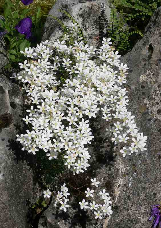 Ein nicht so winziger Zwerg ist Campanula dolomitica, dafür aber auch nicht so empfindlich und außerordentlich reichblütig.