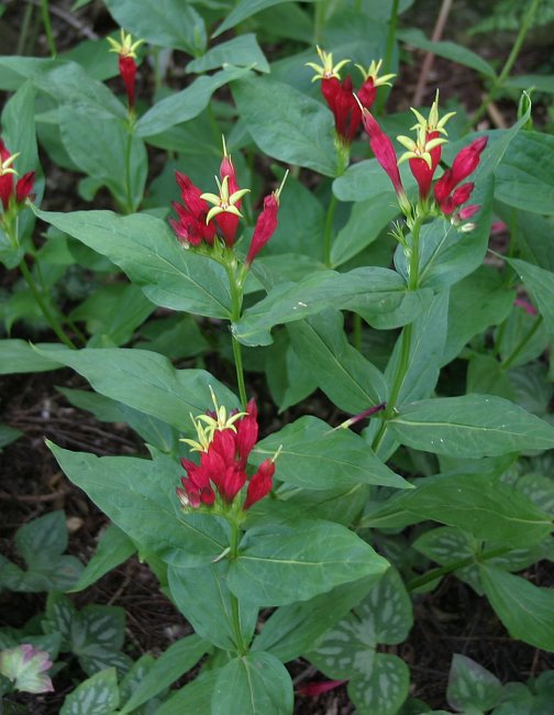 spigelia marilandica, der feuerenzian aus den wäldern der östl. usa...weithin leuchtend im schattenbereich