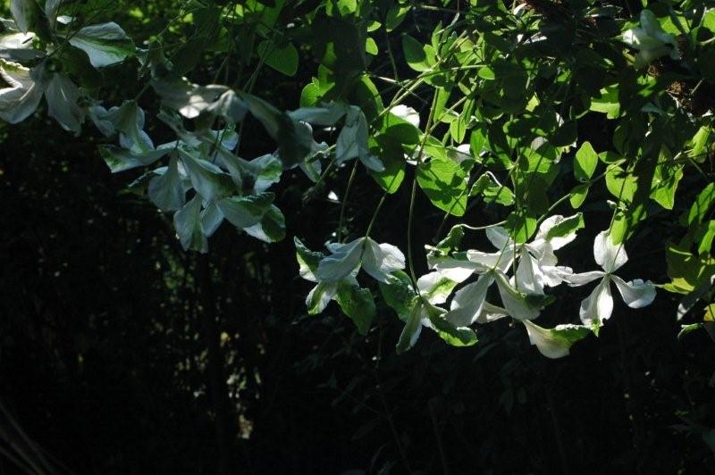 Und jeden Morgen ein Star ist die Clematis "Alba luxurians" wenn sie von der Sonne durchschienen wird