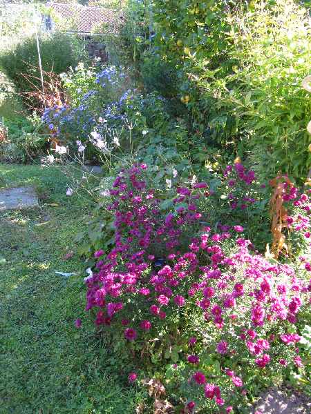 oile, deine blaue aster ist sehr hübsch :D letzten herbst habe ich meine lila myrtenaster in ein beet gesetzt und war heuer begeistert über die zahlreichen kleinen blüten :D aber jetzt, beim jäten, war ich entsetzt über den ausbreitungsdrang ... ich habe sie in 2 große töpfe gesetzt und hoffe, daß sie trotzdem üppig blühen wird.