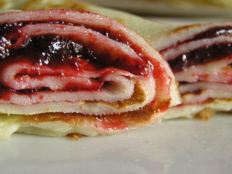 heute gabs nur pfannkuchen mit marmelade. hier im bild mit selbstgemachtem brombeer-apfelgelee.