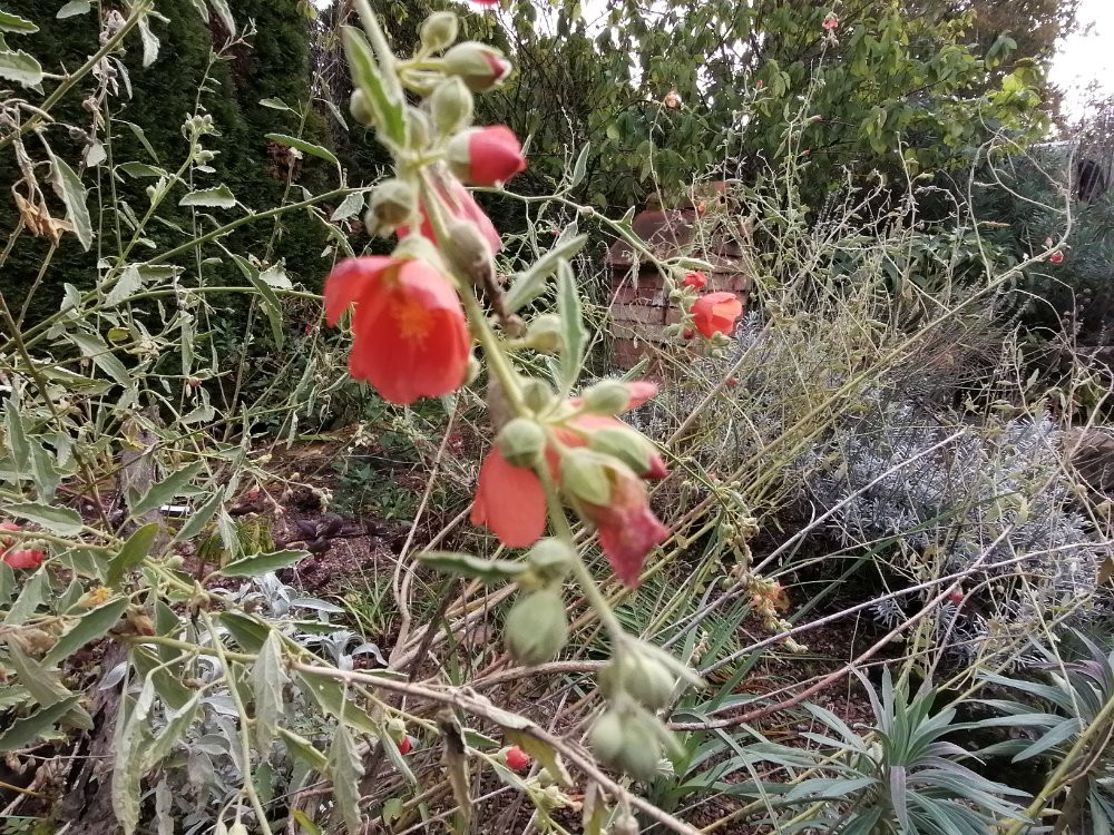 Spaeralcea incana hat letzte Blüten, die Blüten sind mittlerweile so lang, dass sie überhängen.