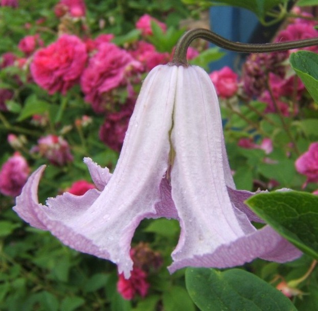 Ein schönes Eisblau hat auch C. viticella Vanessa. Sie fängt gerade erst an zu blühen.Kann es sein, daß auch Viticellas die Clematiswelke bekommen? An Negritjanka und Polish Spirit habe ich je einen trockenen Trieb entdeckt. Auch eine Texensis hat so was Vertrocknetes.
