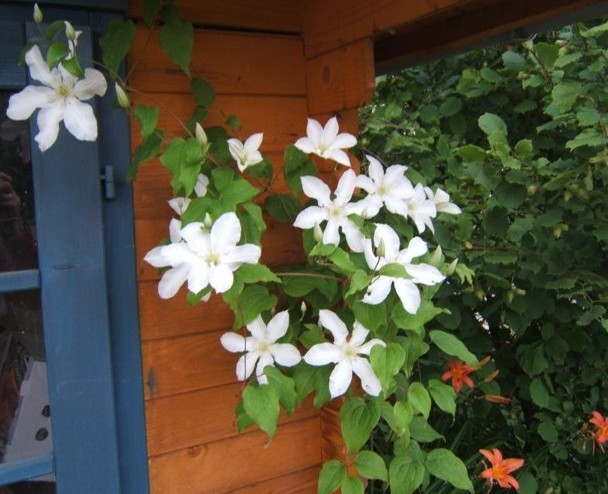 Auch die Viticellas sind Hybriden, besonders die mit den relativ großen, offenen, nicht hängenden Blüten. Meine Polish Spirit ist auch schon welkehalber vorübergehend verschwunden gewesen. Bei Clematis on the Web wird sie übrigens zu den spät blühenden Hybriden gezählt. Auch einige andere Sorten, z.B. Blue Angel, werden wohl eher aus verkaufsfördernden Gründen oft zu den Viticellas gezählt.