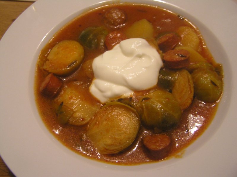 und heute gabs lieblingseintopf mit einem klacks sauerrahm und baguette dazu