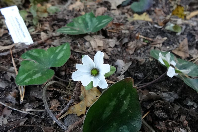 In Waldgarten blühen seit einiger Zeit ein paar im Frühjahr gepflanzte Leberblümchen . Von Hepatica nobilis Pink Foresthabe ich keine Bilder, sind leider schon verblüht.Hepatica nobilis White Forest konnte ich noch ablichten.Das Blatt ist sehr schön marmoriert.