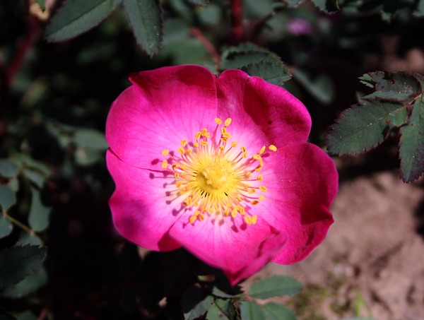 Die Pimpinellifolien sind in diesem Jahr wirklich sehr schön!Eine neue von Prijo Rautio blüht seit einigen Tagen, ist aber auch vom Knospenstecher geplagt. Sie geht so in Richtung Singel Cherry, aber ist hübscher, finde ich, weil sie ganz weit öffnet und nicht so "flatterig" ist wie Single Cherry und andere, die sehr ähnlich und identisch sind, aber mit unterschiedlichen Namen
