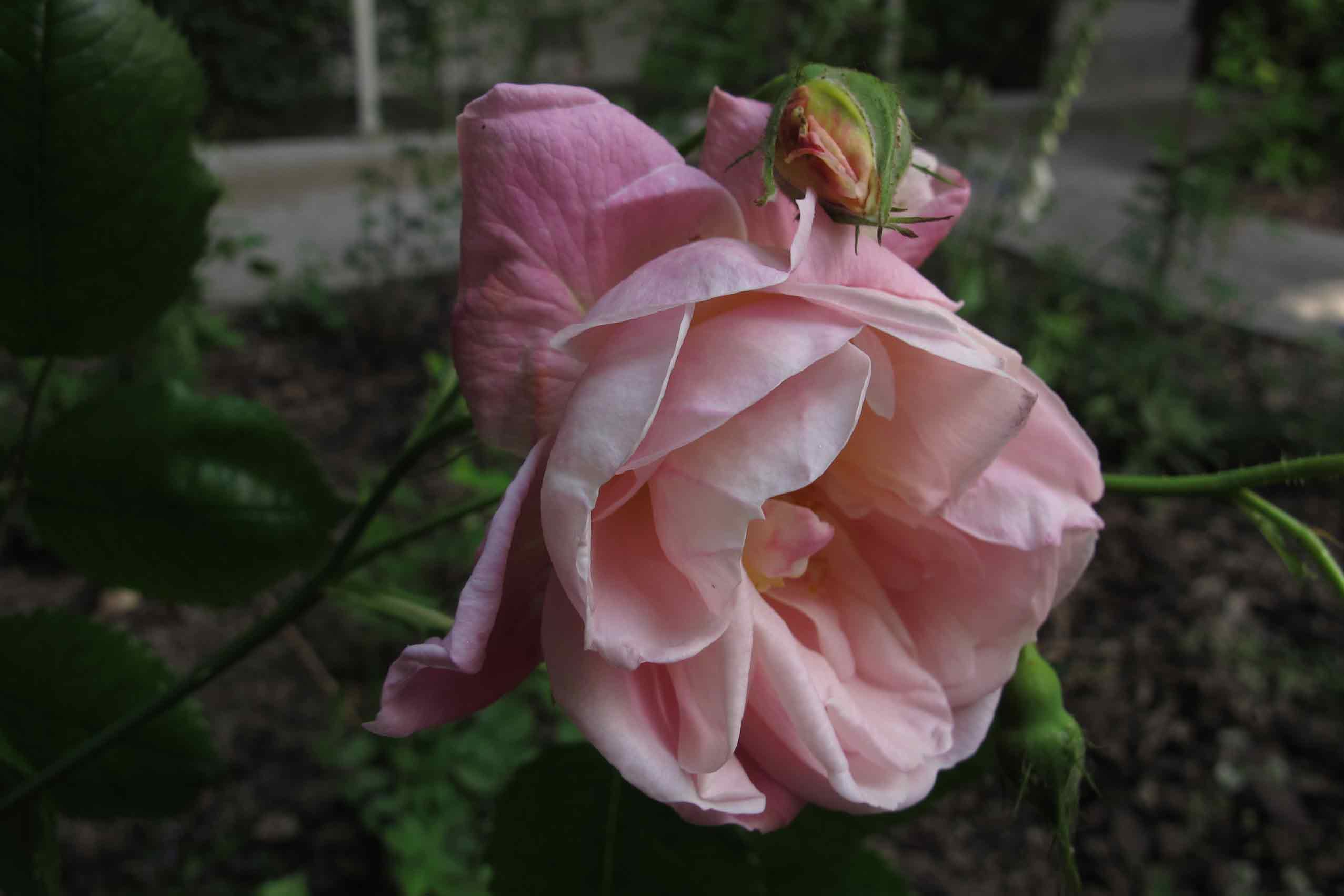 marcir, jetzt bin ich eine ganze Weile vor diesem Bild gesessen und habe gedacht, das ist sie nicht. Die Blüten sind nicht so gefüllt und flattriger :-\Das Burgunderröschen ist hübsch, wie hoch wird es? Überhaupt zeigt ihr sehr schöne Bilder, sie machen mir ein bisserl das Herz schwer. Viel werde ich heuer wohl nicht zeigen können, wahrscheinlich nicht einmal die Alba-Gallica-Hecke, die sieht immer noch zum Fürchten aus.Aber wieder einmal muß ich Nymphenburg loben. Wären da nicht zweimal böse Spätfröste nach ungewöhnlicher Hitze gewesen, hätte ich gar nicht so viel schneiden müssen (Sie hatte allerdings Reisigschutz). Und im Schattenreich in der Stadt hat sie eben eine Blüte geöffnet, deren fruchtiger Duft meterweit strömt. Leider sind die Triebe durch die Lichtverhältnisse sehr dünn, deshalb trägt sie die Knospe huckepack.Leverkusen, die still und heimlich ihre ersten Blüten zeigte:
