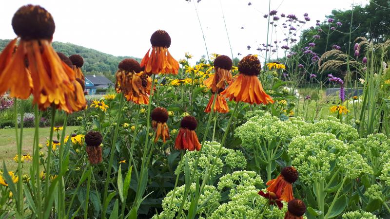 Im letzten Jahr war ich bei Jacobs in Vrieschelo, Holland. Allerdings schon im Juni. Dort befindet sich die Helenium Sammlung der Niederlande. Letztes Wochenende war wohl das diesjährige Heleniumfest. Aber wegen Corona... fahre ich zurzeit nicht so viel herum :-\ Jetzt nach dem Fest wäre das aber sicher ein Ausflugsziel für Helenium Fans. Wunderbarer Schaugarten der Gärtnerei.. sowas findet man in Deutschland wohl eher selten. Leider ist mein Holländisch sehr ausbaufähig bis gar nicht existent. :o hwttps://www.kwekerijjacobs.nl/