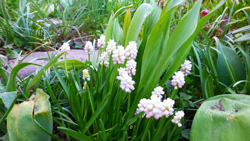 Mir schein das, was Du zeigst, keins zu sein. Hier ein Foto von 2017, habe sie dieses Jahr noch nicht gesichtet. Bellevallia pycnantha hat recht breite Blätter, deutlich breiter als die von Muscari neglectum oder Muscari armeniacum. Die Form der Blüte ist anders, nach unten breiter werdend.