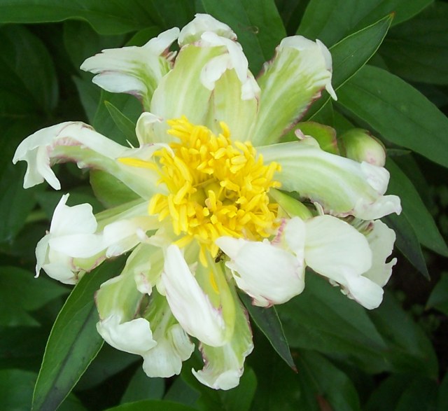 Diese Päonie habe ich einmal als ´Buckeye Belle´aus Holland bekommen. Dass es diese Sorte nicht ist, ist klar, aber hat jemand eine Idee, welche es sein könnte? Die Stängel sind 1,2 m lang und auffallend dick, legen sich aber auch auffallend flach nieder. Viele Nebenkknospen, durch den schönen Duft eigentlich eine gute Schnittsorte.