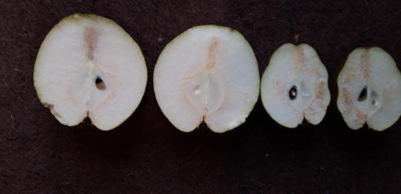 Also, hier noch das Schnittbild und ein paar typische Früchte. Reife seit Ende Juli (in anderen Jahren etwas früher). Der Baum wurde, wenn meine Nachbarin recht hat, Ende der Fünfziger Jahre gepflanzt. Wäre super, wenn jemand die Sorte bestimmen kann.