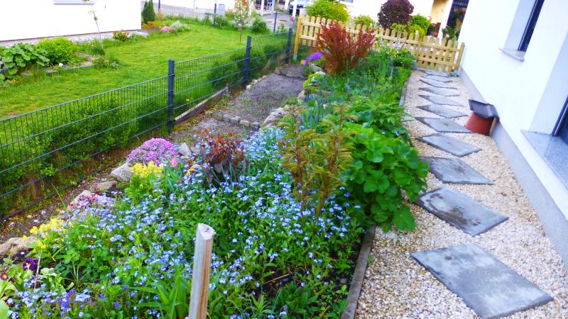 @APO1: Für einen relativ neuen Garten sieht das in der Tat schon recht üppig aus. Mir persönlich wäre es am Haus auch etwas zu viel weg und zu wenig Beet, vielleicht ließe sich der Kiesstreifen in der Tat ein wenig mit "Fugenkünstlern" begrünen.