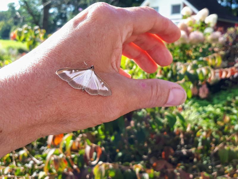 Dieser nette Falter ist wohl ein Buchsbaumzünsler. :-\