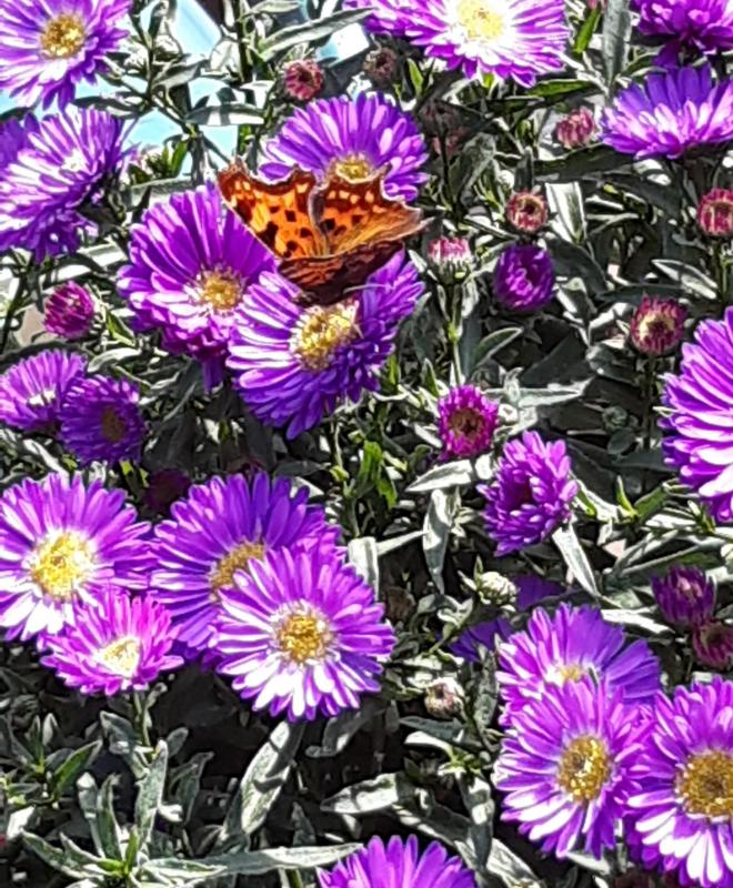 Und es besteht Grund zur Freude: Heute habe ich die ersten zwei Admirale an den Astern entdeckt, ich wusste doch, dass die sich einfach nur etwas verspätet haben. Ansonsten noch jede Menge Tagpfauenaugen (leider hatte ich die Kamera nicht parat), diverse Kohlweißlinge und ein C-Falter.