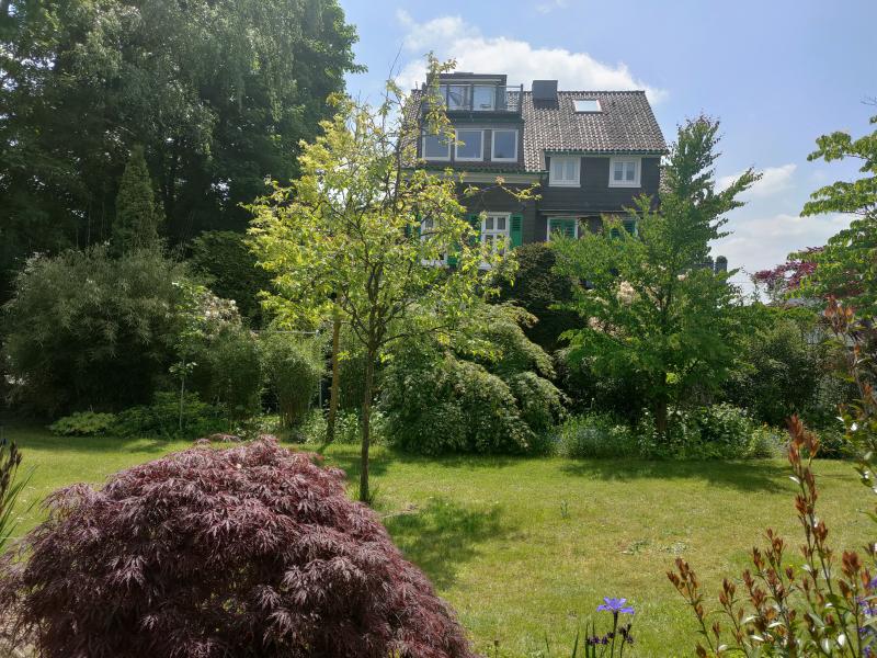 Ja, ich finde das Haus auch schön und meine Nachbarn mag ich ebenfalls, aber in meiner Idealvorstellung sieht man die gebaute Umgebung zumindestens im Sommer nicht.