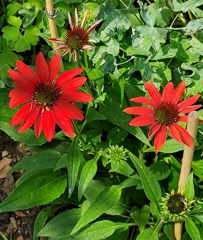 Schade, nur noch eine rote Echinacea. Die Nachbarin wurde von einer Wühlmaus gemeuchelt.