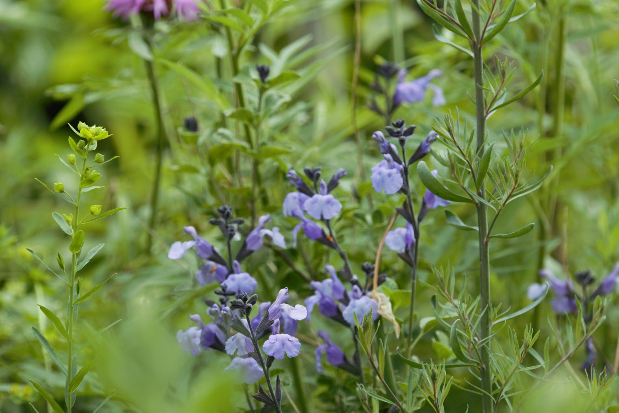 Nach ziemnlich radikale Rückschnitt beginnen die Salbeien langsam mit der Blüte.