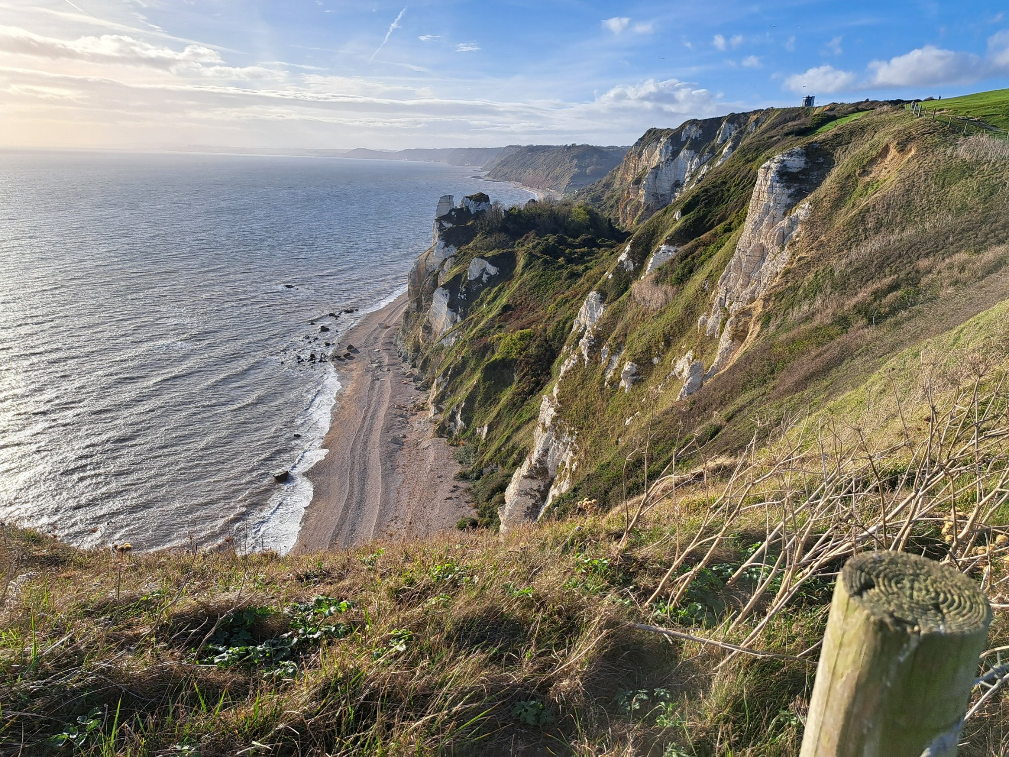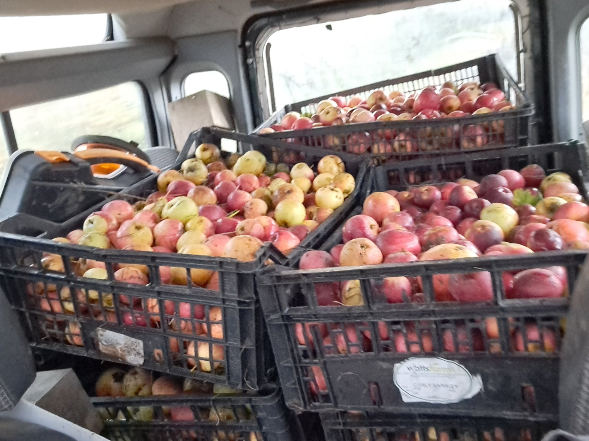 ), tägliche Kontrolle und Zusatzfütterung der Schafe und Hühner, Feuerholz maschinell spalten, Feuerholz in Gitterboxen verladen und durch die Gegend fahren, den Telehandler (Teleskoplader mit 9m Tele) fahren und bedienen, Tür an eine Gitterbox anbringen damit Clive darin stehend den Baumüberhang wegsägt während ich fahre, den Minibagger durch die Gegend fahren, Rinderhälfte im Kühlhaus portionieren und verpacken helfen, Huhn schlachten und rupfen (fast wöchentlich), Apfelsaft pressen und Cider ansetzen, Löcher in dicke Stahlplatte bohren, Gründüngung im Garten ausbringen (Ackerbohnen), Pflanzen umpflanzen, Hund und Katzen beschmusen, Geschirrspüler ausräumen helfen, manchmal den Abwasch erledigen, Gewächshaus bissel aufräumen, Hühnerstall ausmisten (mein Vorschlag), große Hunderunde am Wochenende zu tollen Orten mit begleiten, Ideen haben und kreative Lösungen für problematische Ecken vorschlagen, ... es gab nie ein Muss, immer nur ein "das und das müsste/könnte gemacht werden, wäre das was für dich?". Und für heute durfte ich mir was wünschen und deshalb haben wir den Uralt-Unimog (BJ 1958) rausgekramt - mixing business and pleasure - und haben auf einer der Weiden einen umgekippten Baum zurechtgesägt und auf dem Unimog verladen. Na klar durfte ich fahren