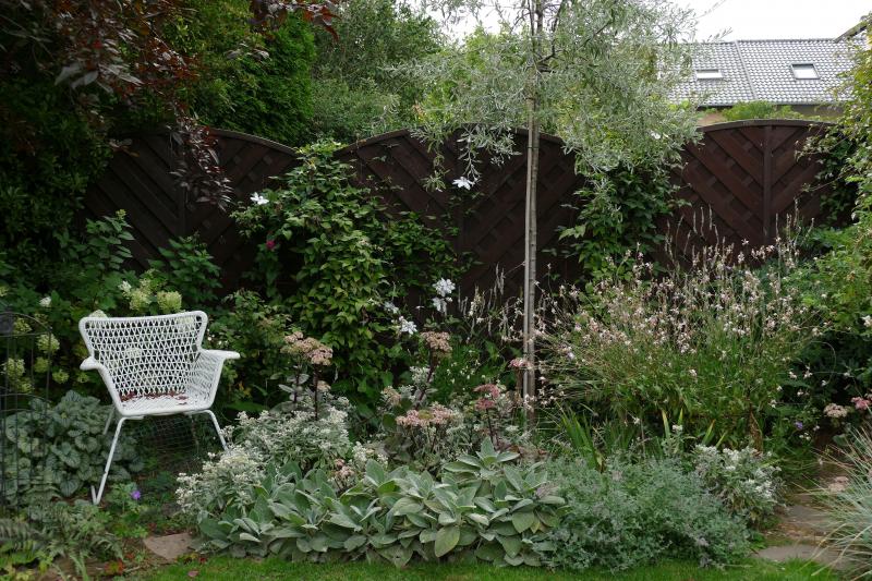 Auch wenn es hier wenig Kontraste gibt, ich mag dieses Beet obwohl es dieses Jahr nicht so schön ist, da Anaphalis triplinervis 'Silberregen' die Hitze und die Trockenheit nicht mag.