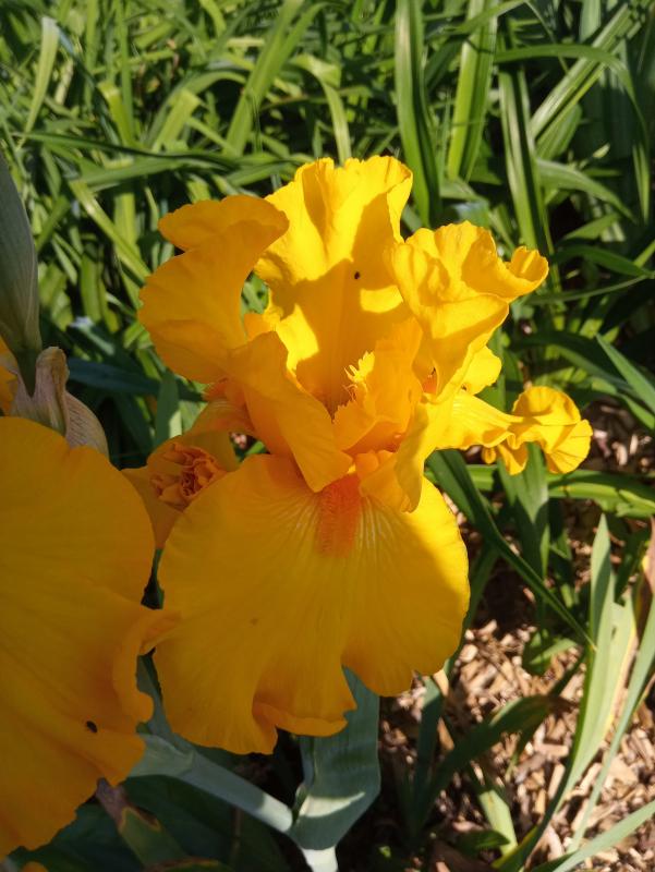Zwischen den Iris hat sich viel Eichenlaub angesammelt, mir scheint es, als ob sie das gut vertragen hätten. Ich habe das erst mal entfernt, beim Jäten, damit alle Rhizome frei liegen und Sonne abbekommen. Löcher habe ich mit Komposterde gefüllt und alles mit Jurakalksplitt bedeckt, dann ein bisschen vom Eichenlaub drüber gestreut.