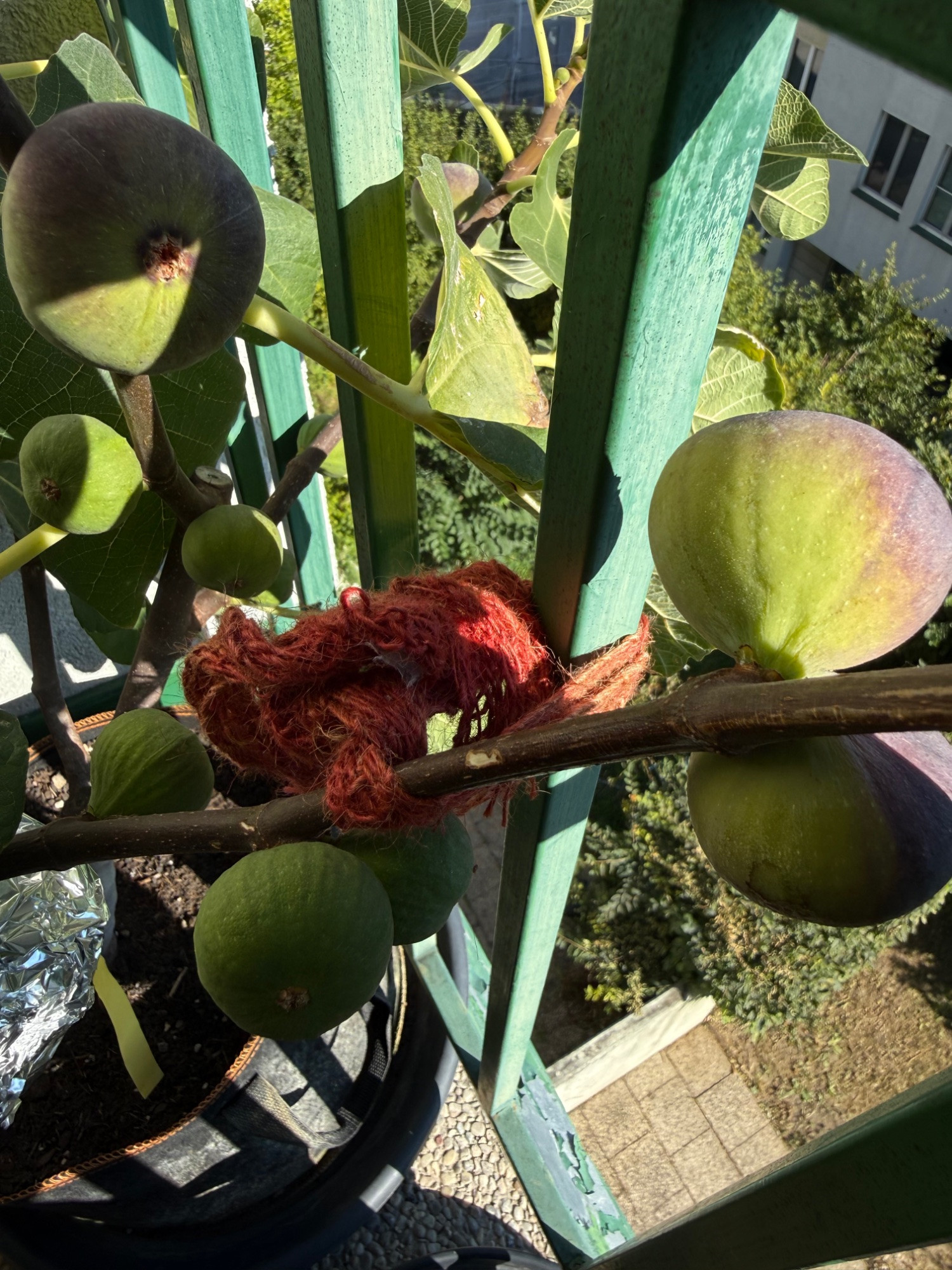 Es waren ca. 25 Herbstfeigen auf 3 Haupttrieben. Aktuell so hoch wie ein Balkongeländer. Wurde bisher jährlich zurückgeschnitten. Diesen Winter nicht, da ich auch mal Brebas, die exzellent sein sollen, verkosten möchte.