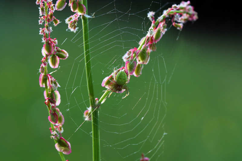 Dann noch eine winzige grüne Spinne zwischen Sauerampfer