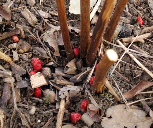 Etwas Sonne und der Schnee verschwindet im Nu. Schon schauen die Staudenpfingstrosen aus der kalten Erde: