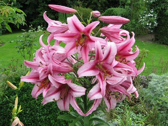 Wenn sich so etwas von alleine oder durch äußere Einflüsse tut, würde mich das auch immer wieder anziehen, um zu sehen wie es weitergeht...ohne einzugreifen.Mein Star des Tages...schon seit Tagen...ist eine Lilie, deren Namen ich verschlunzt habe und deren Austrieb im ersten Jahr ungewollt dem Hacker zum Opfer fiel. Durchmesser der ganzen Blütenpracht fast 50 cm, keine Ahnung wieviel einzelne Blüten und sie duftet ganz stark selbst in der jetzt kühlen Luft.