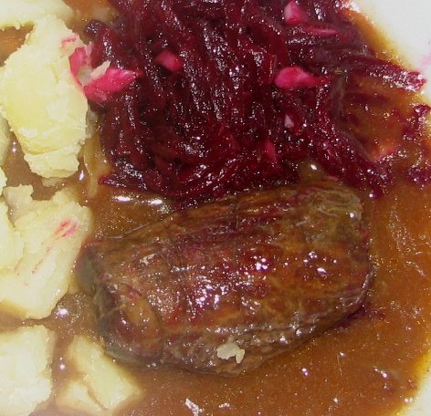 heute gab es kleine rinderrouladen mit rote-beete-salat und frisch geernteten kartoffeln: