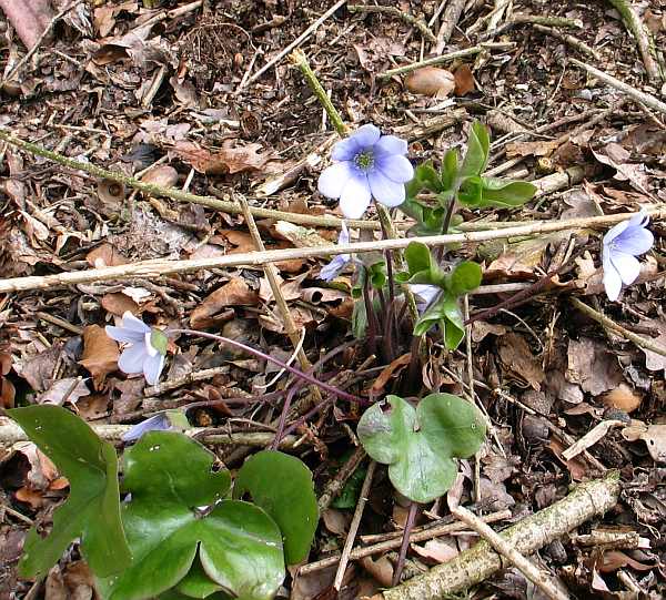 Heut hab ich wieder ein sehr schönes Hepatica gesehen. Es stand auf einer Fläche die ehemals sehr dicht mit diversem Gehölz zugewuchert war. Das war gerade alles sehr brutal auf Bodenhöhe abgesäbelt worden. Ein größerer Brennholzstapel nahm dort gerade Gestalt an. Die Fläche war sehr zertrampelt aber diese Schönheit blühte gerade nur leicht zerzaust mit riesigen Blättern und 3,5 cm Blüten (ich hab meist ein Metermaß im Auto, so auch heute). Innen dunkler blau außen sehr hell.