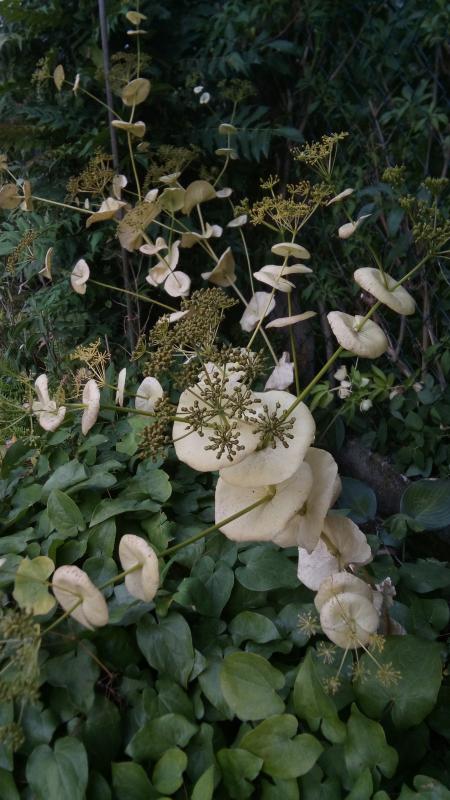 Den Smyrnium würde ich schon stehenlassen, aber der behindert einerseits die Begehbarkeit der Fläche unterm Apfelbaum und an anderer Stelle nehmen die Skelette einigen Paeonia rockii zulange das Licht weg. Das sind die Nachteile von (mehr oder weniger) Spontanaussaat.