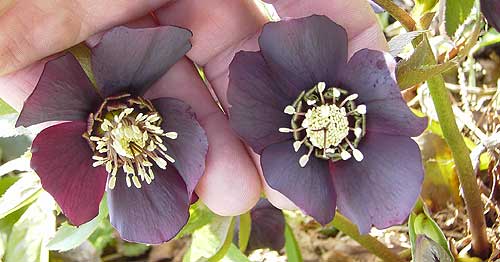 und hier nochmal die rötlichen Stängel und rosalichen Blüten.Insgesamt sind die Blüten viel zierlicher als bei H. niger und H. orientalis.