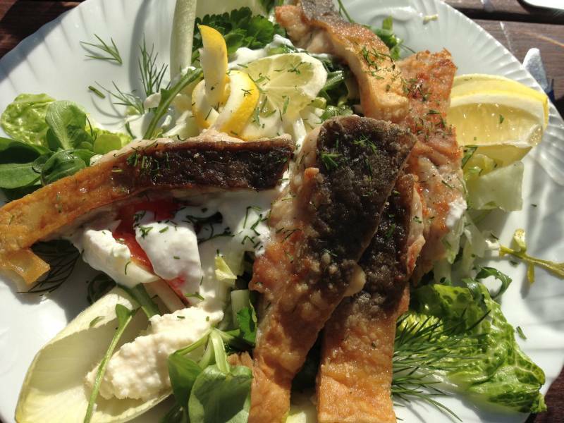... und einen tollen salat mit gebratenem karpfenfilet und meerettichjoghurtsauce
