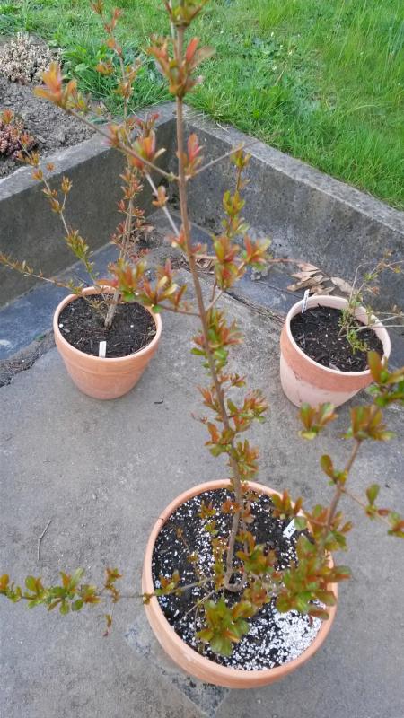 Die Granatäpfel standen den Winter über im Freien, unter einem Vordach, bis auf die zwei kalten Wochen im Februar. Den ganzen Winter über habe ich die Granatäpfel kein einziges Mal gegossen.