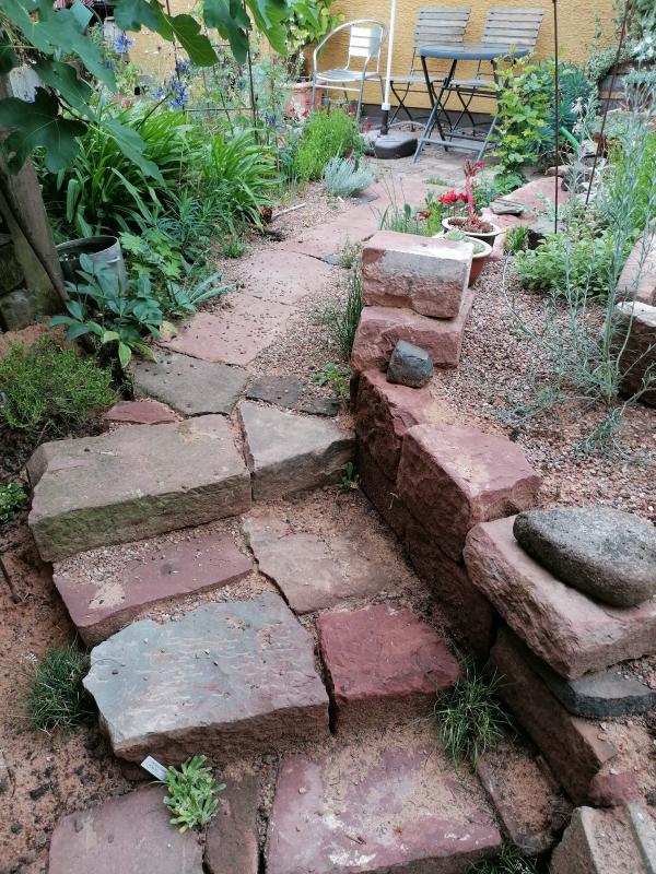 @mediterraneus, das sieht wunderbar aus, was für eine schöne Farbe Rot ist, nicht zu üppig und passend begleitet. Die steinige Umgebung ist auch sehr gelungen. Ich drücke die Daumen, dass es eine Weile so schön bleibt. Bei mir klappt so etwas nicht, es ist zu viel Samen unterwegs im Garten, auch wenn ich sametragende Unkräuter sorgfältig via Müll entsorge.